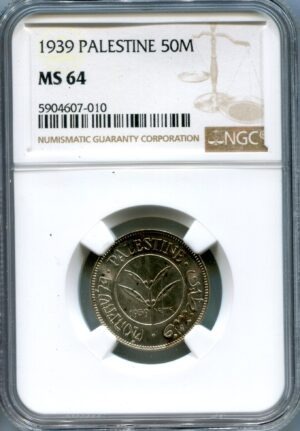 Palestine Silver 50 Mils 1939 KM-6 NGC MS 64