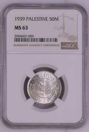 Palestine Silver 50 Mils 1939 KM-6 NGC MS 63