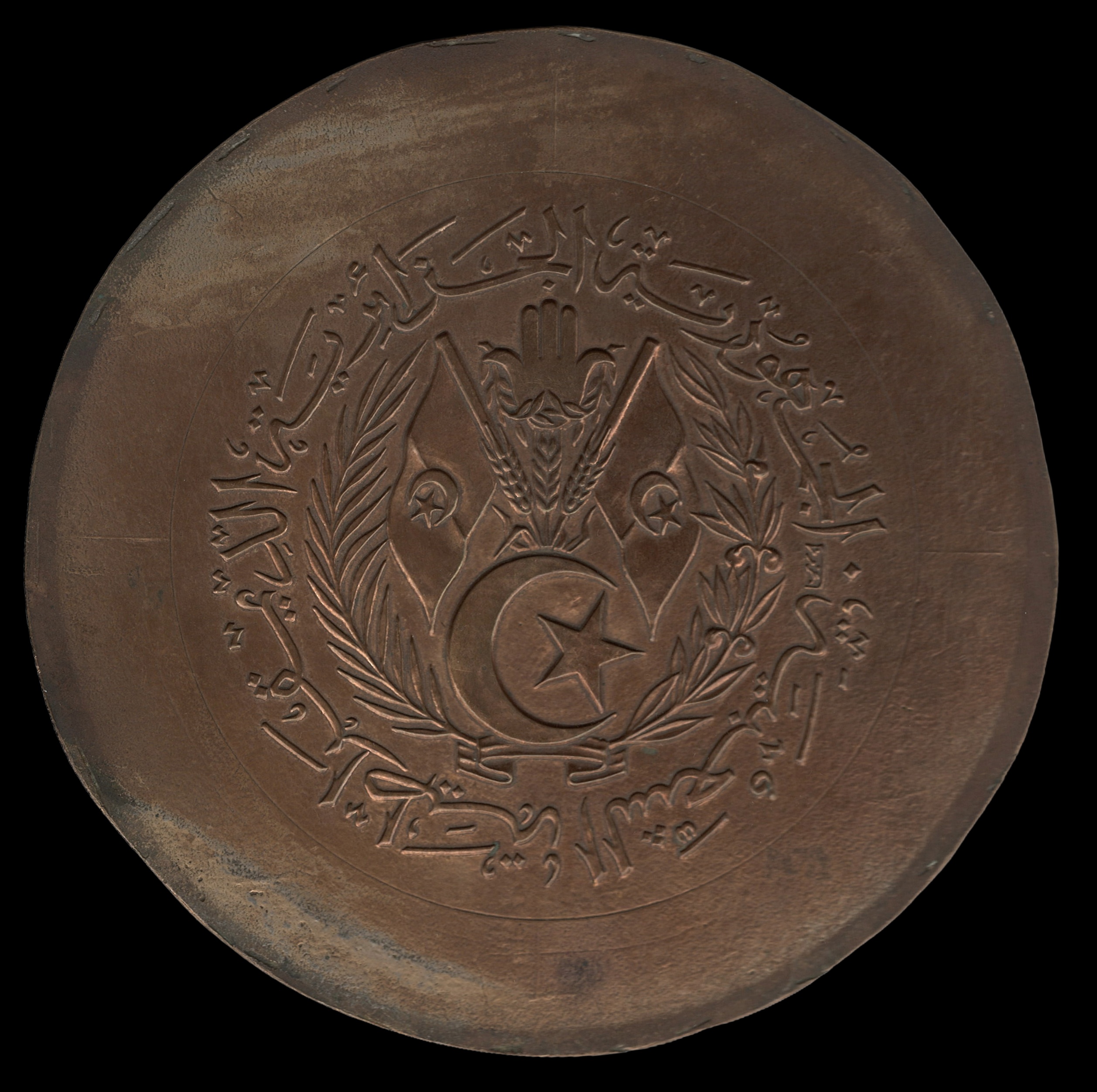 This piece is uniface and engraved in deep relief on a heavy metal plate, approximately 20 cm (about 8 inches) in diameter. The metal appears to be copper or bronze. The scale, depth of engraving, and format are consistent with objects produced as engraving references, design models, or studio pieces associated with the preparation of coin or medal dies, although the exact function is not documented.