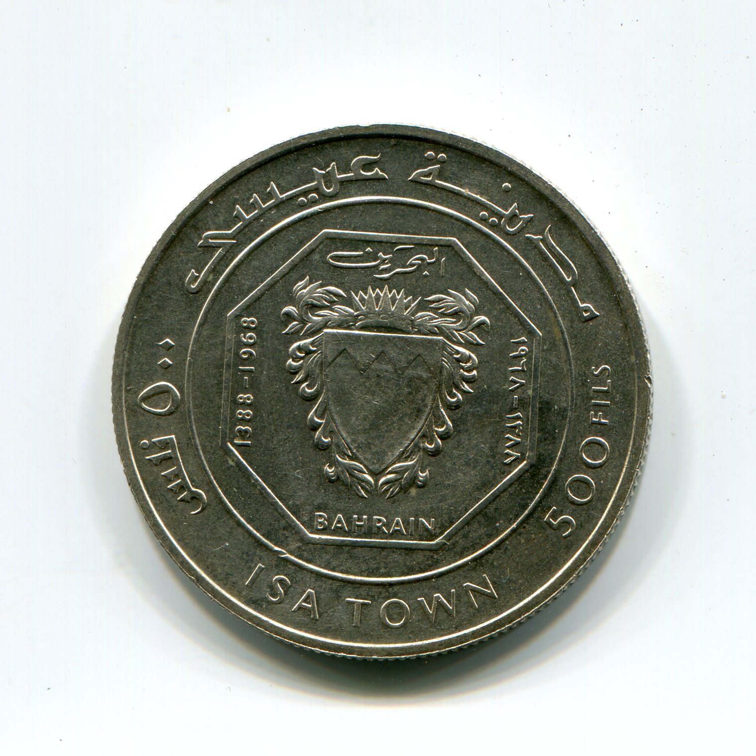 High-silver Bahraini 500 Fils from the late 1960s containing approximately 18.3g of silver, preserved in mint condition.