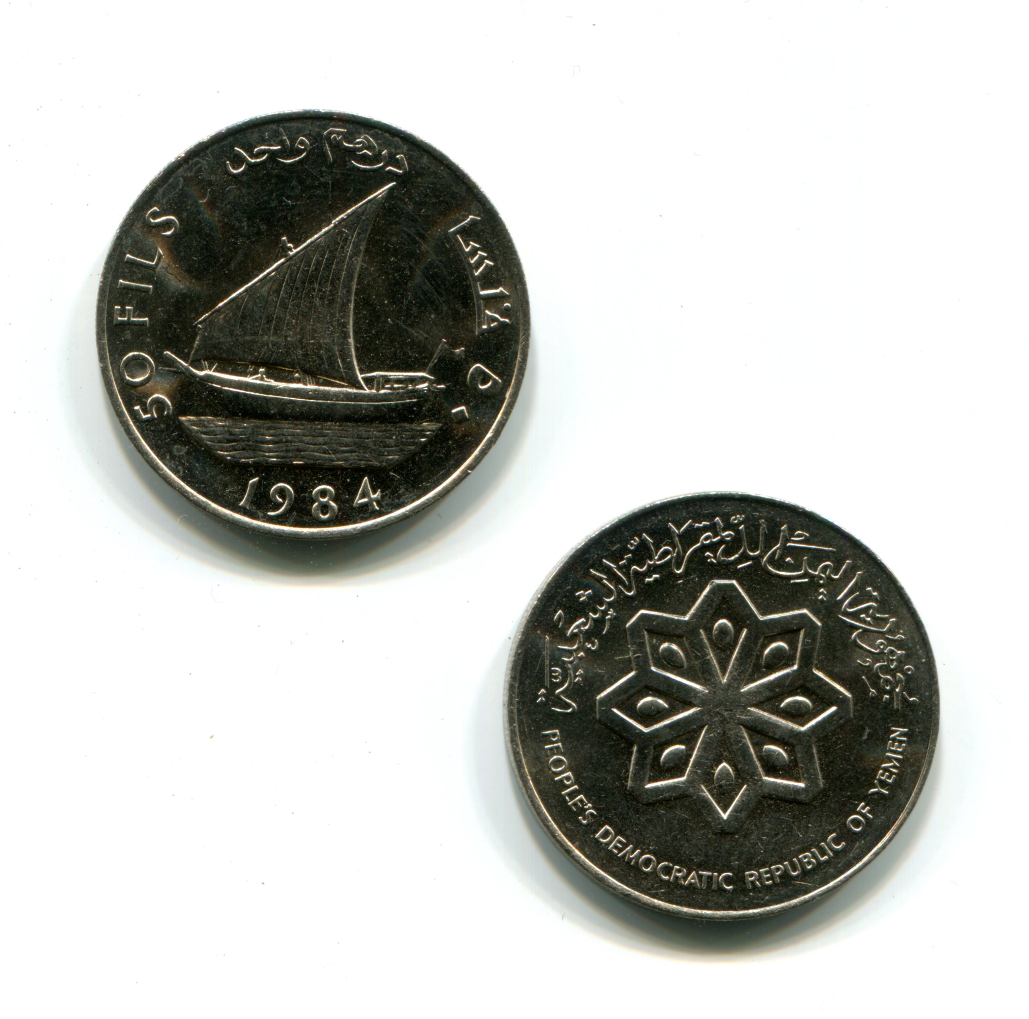 Democratic Yemen 50 Fils 1984 KM-6 – Dhow – BU/Uncirculated