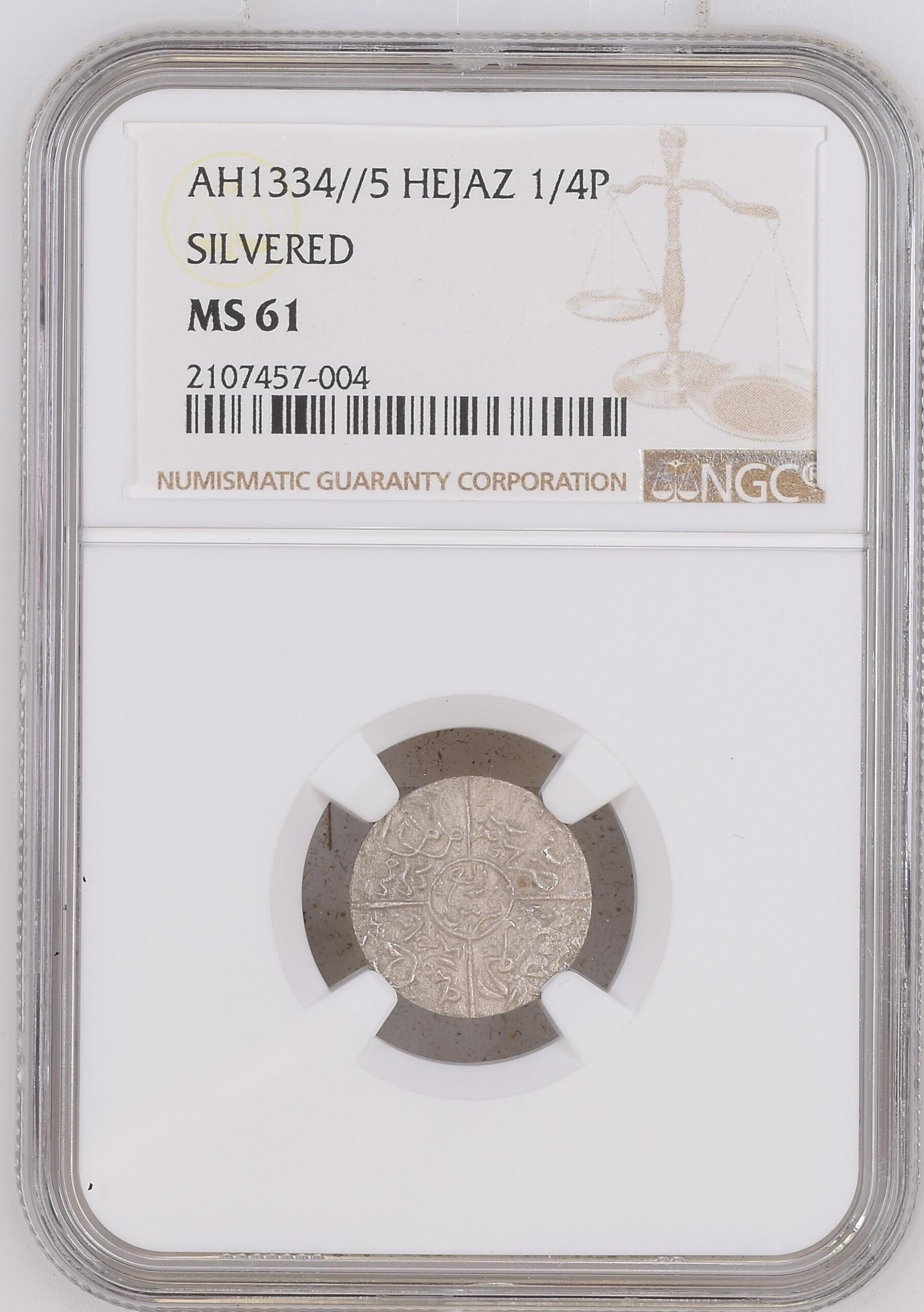 Hejaz 1/4 Qirsh AH1334/5 Y-22 Silvered NGC MS 61 Hussein bin Ali