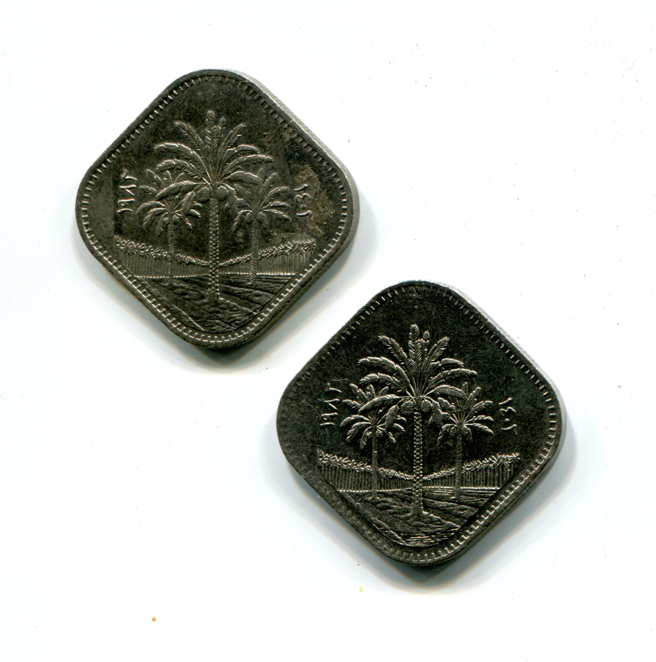 Iraq 500 Fils 1982 Pair – KM#165 & KM#165a Error Variety – Palm Tree AU-UNC quantity