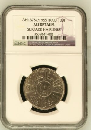 Iraq Silver 100 Fils AH1375 (1955) King Faisal Unissued Key Date Almost Uncirculated