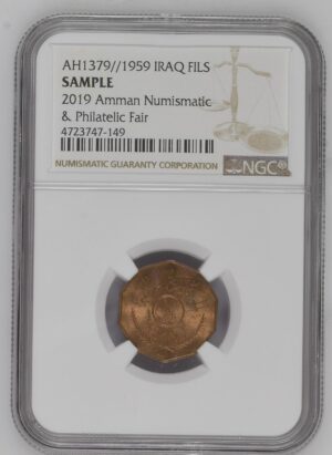 Iraq 1 Fils 1959 AH1379 KM-119 Uncirculated NGC Sample Holder Amman Coin Fair