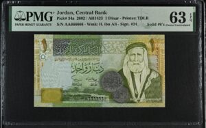 Seven-coin Jordanian set assembled to mark the 70th anniversary of the 1949 coinage, spanning denominations from 1 Fils to 100 Fils, including the elusive error “Fil” variant.
