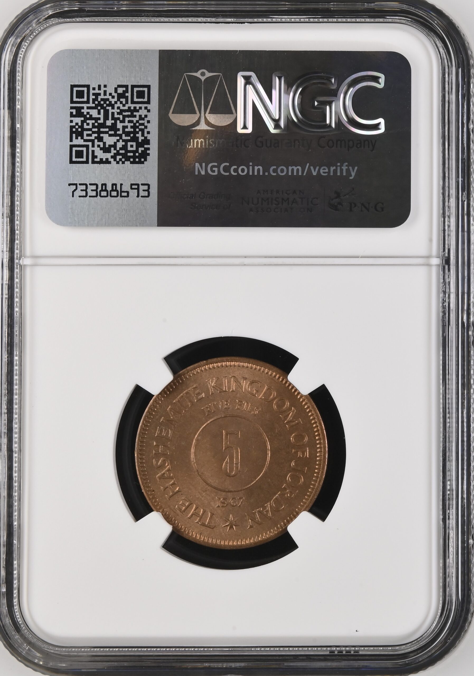 Jordan 5 Fils 1967 AH1387 KM-9 NGC MS 65 RD