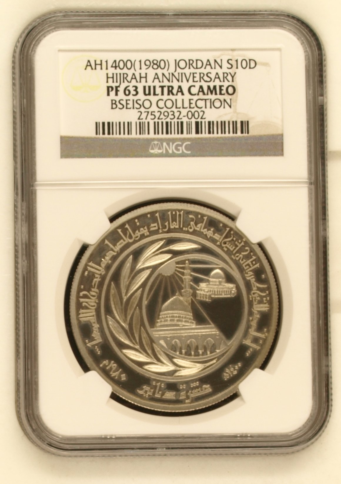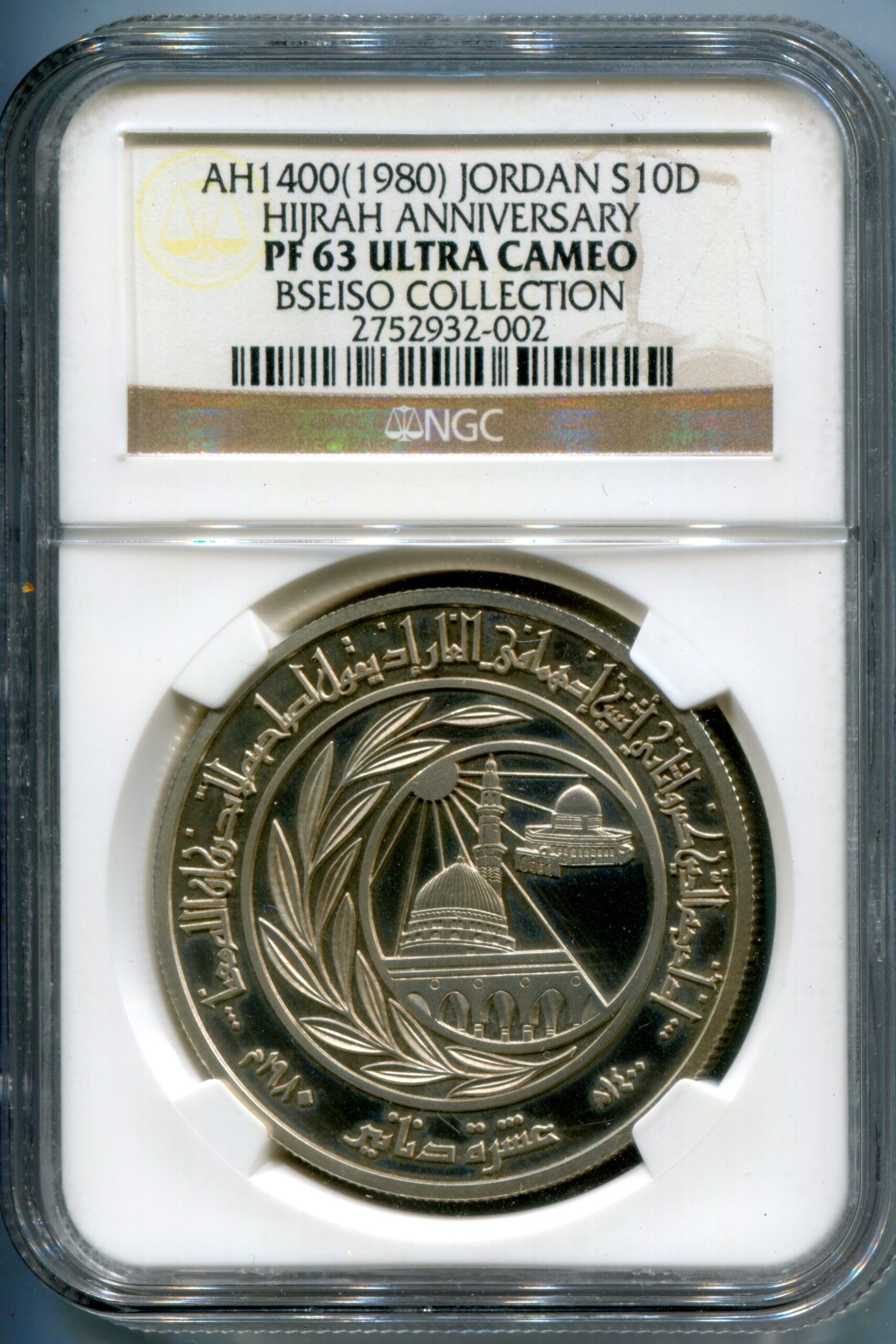 Jordan Silver 10 Dinars 1980 AH1400 KM-44 NGC PF 63 Ultra Cameo