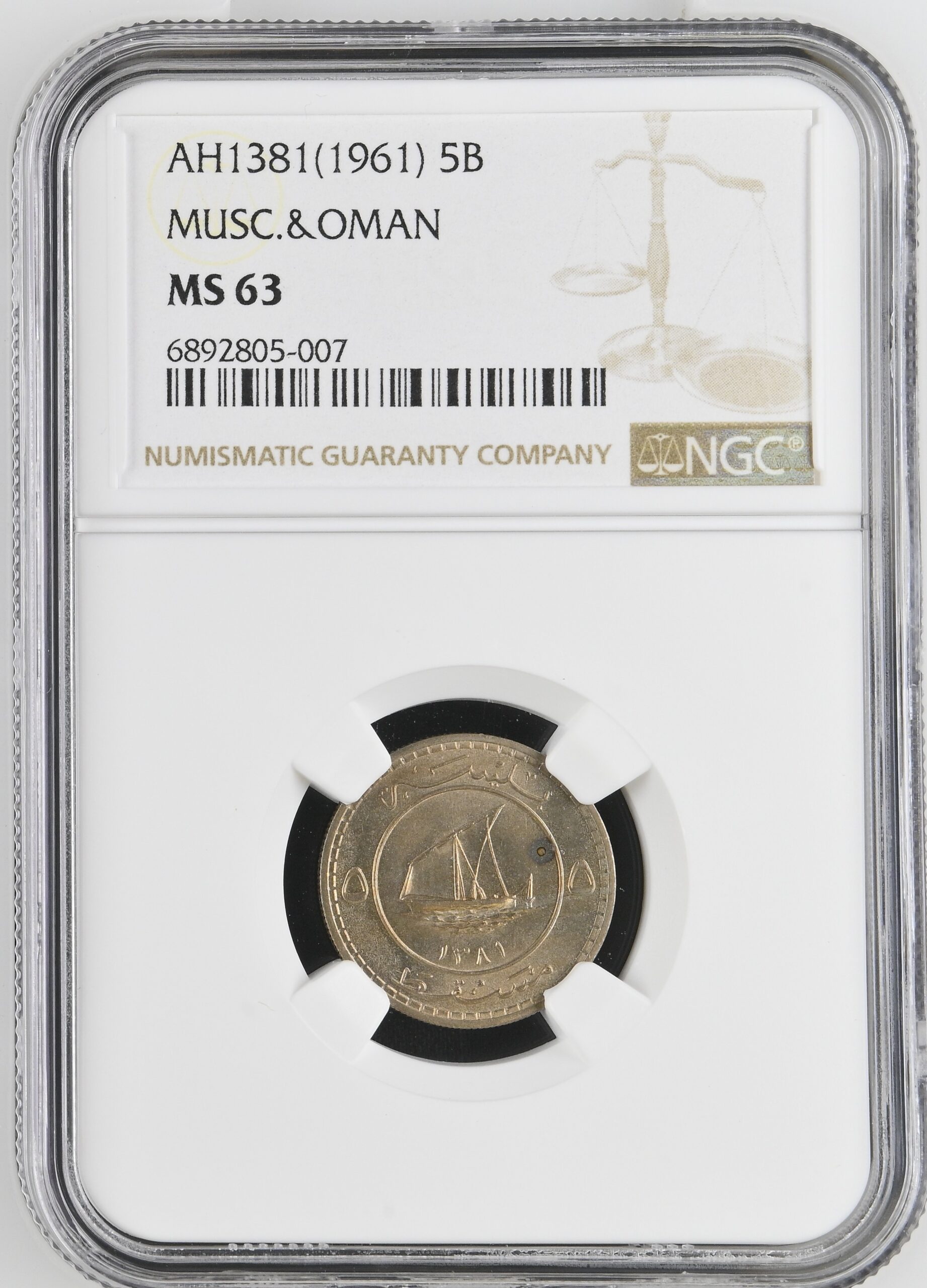 Muscat and Oman 5 Baisa 1961 AH1381 KM-33 NGC MS 63 Choice Uncirculated