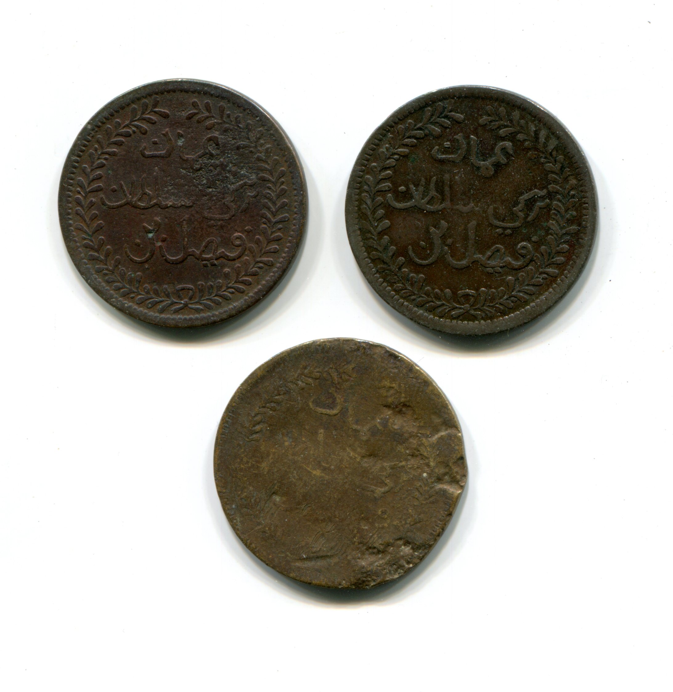 Muscat & Oman 1/4 Anna AH1315 (1898) SC-61, SC-62b, Trio of Copper Coins quantity