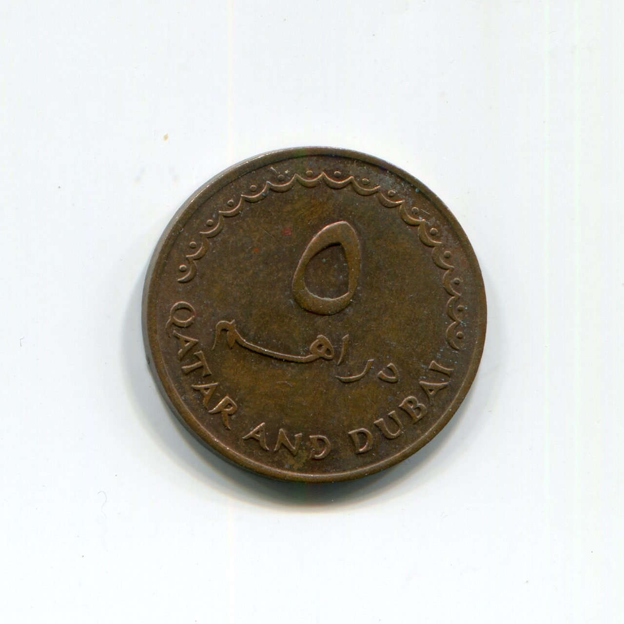 Qatar and Dubai 5 Dirhams 1969 KM-2 Red Brown Uncirculated