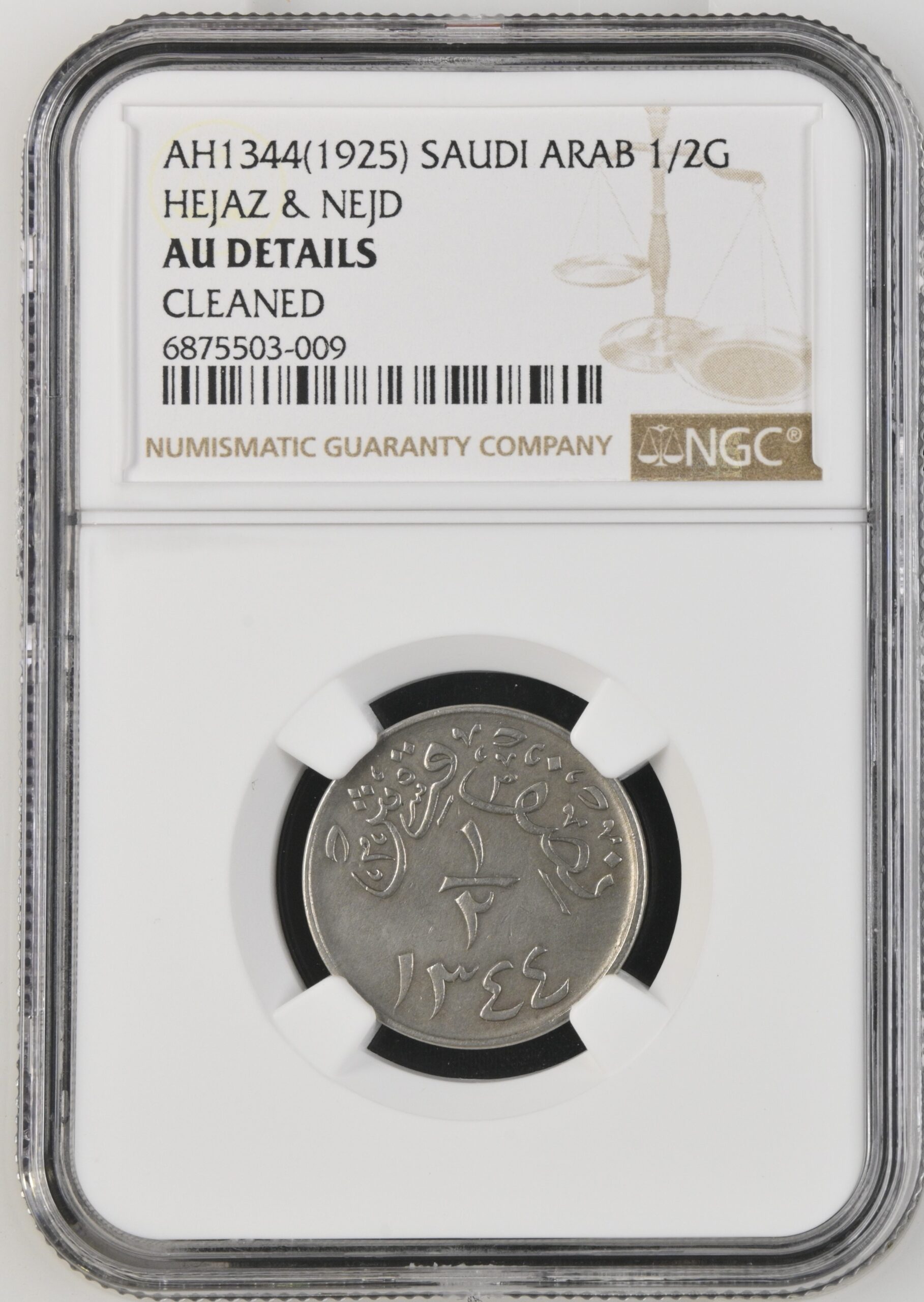 Saudi Arabia Nejd and Hejaz 1/2 Ghirsh AH1344 (1926) KM-5 NGC AU Details