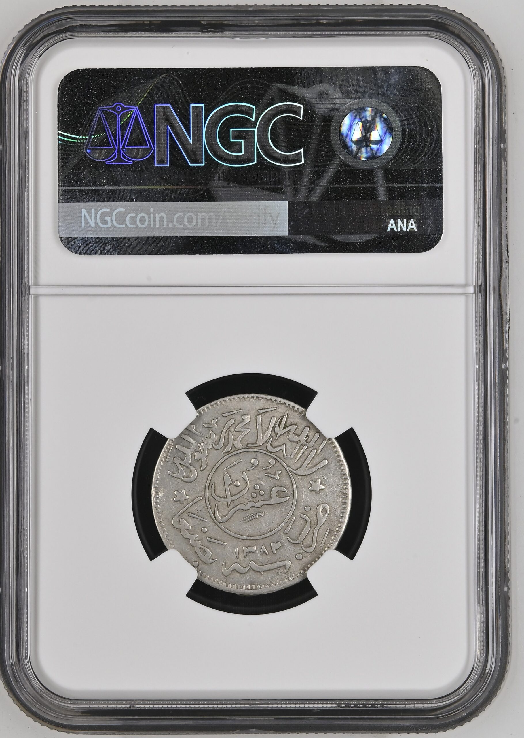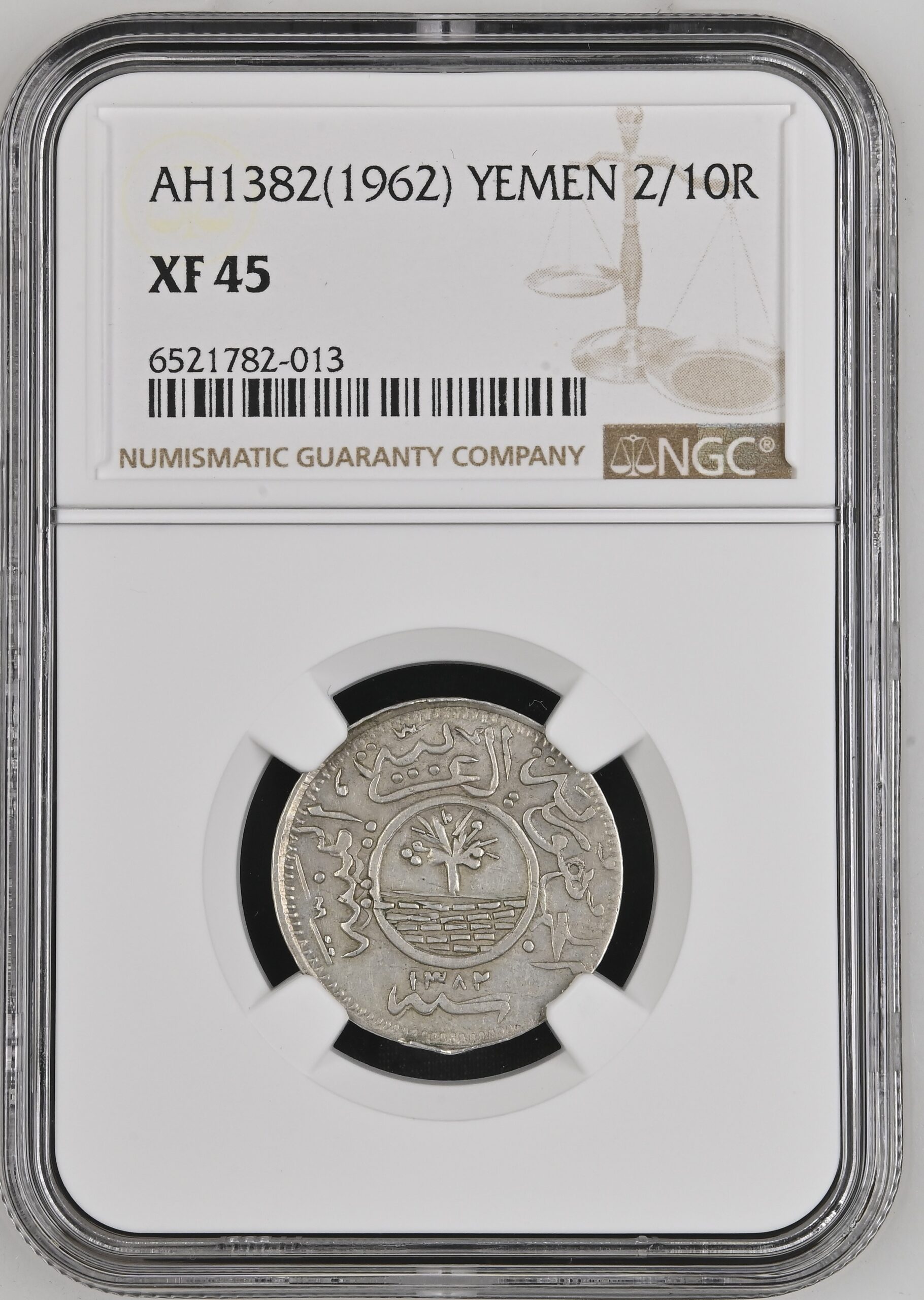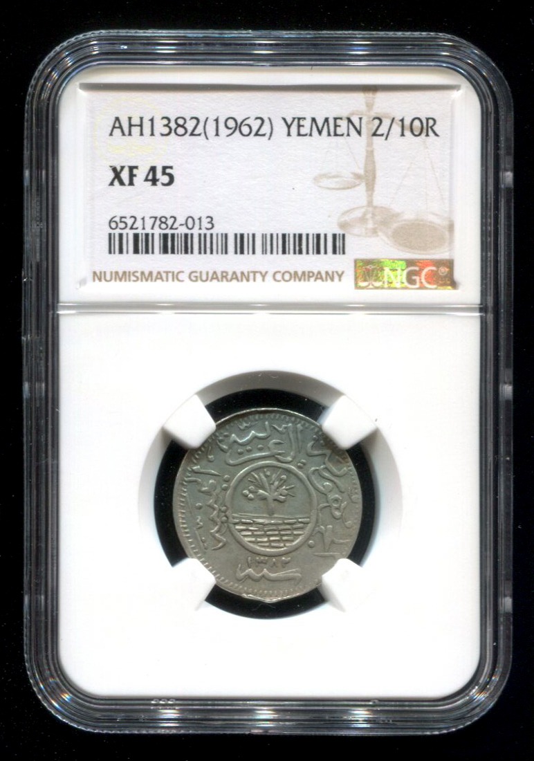 Yemen Arab Republic Silver 2/10 Riyal AH1382 (1963) KM-25 NGC XF 45
